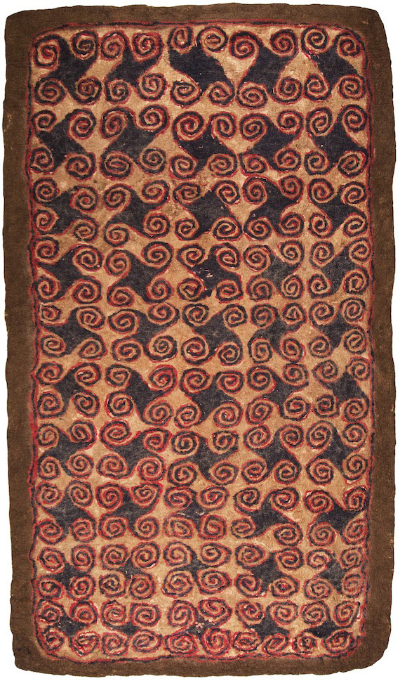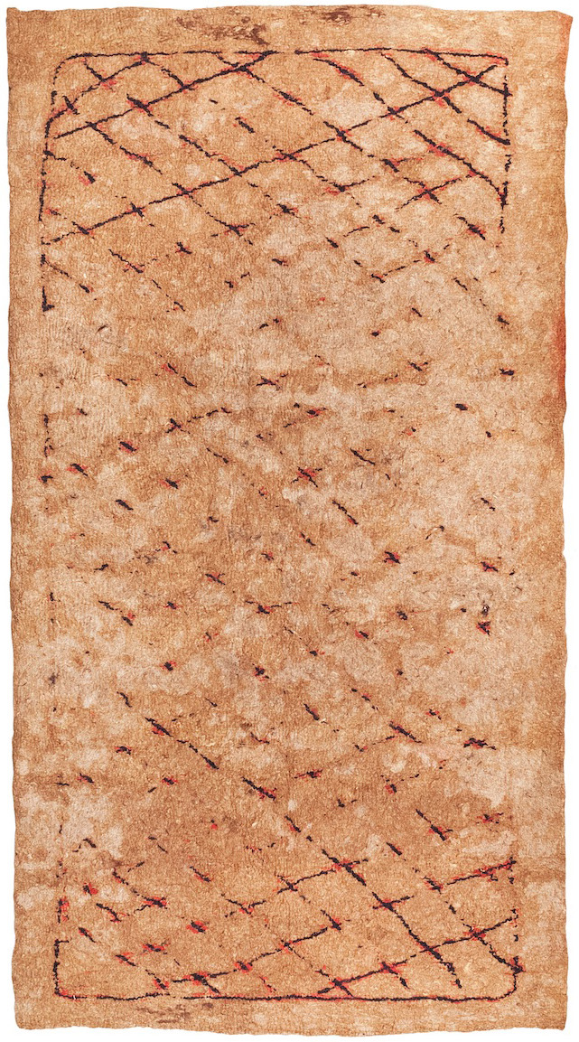 The Yomud nomads from Turkmenistan have been using these felts for thousands of years. This population was the only custodian of a technique – now lost – of making a different design on each side of the carpet: one for everyday use, the other for important occasions and special guests.